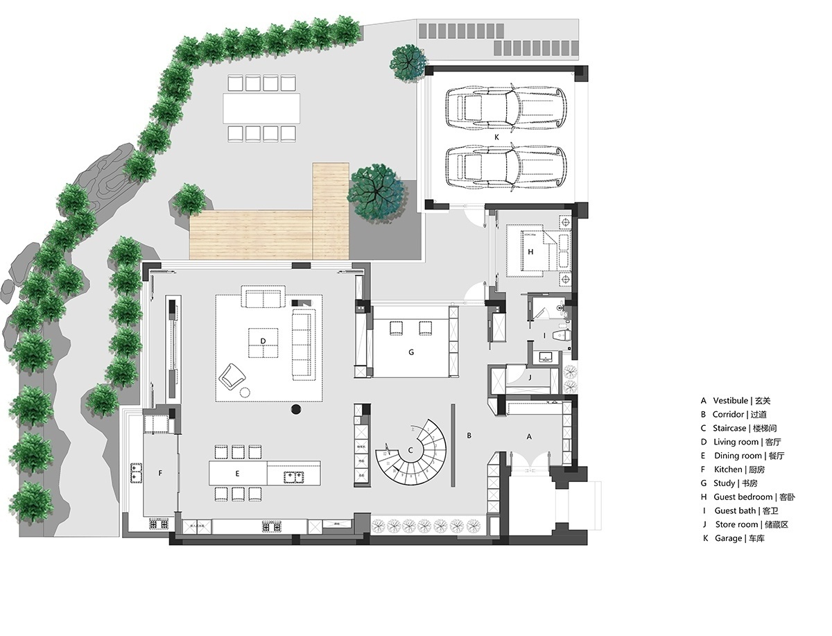 受到环境与建筑哲学的启发,旨在实现空间与自然之间的对话,唤醒人们与地方之间的精神联系,打破城市生活的束缚,设计师希望在这个时空中为用户提供一种尺度感和精神舒适感。