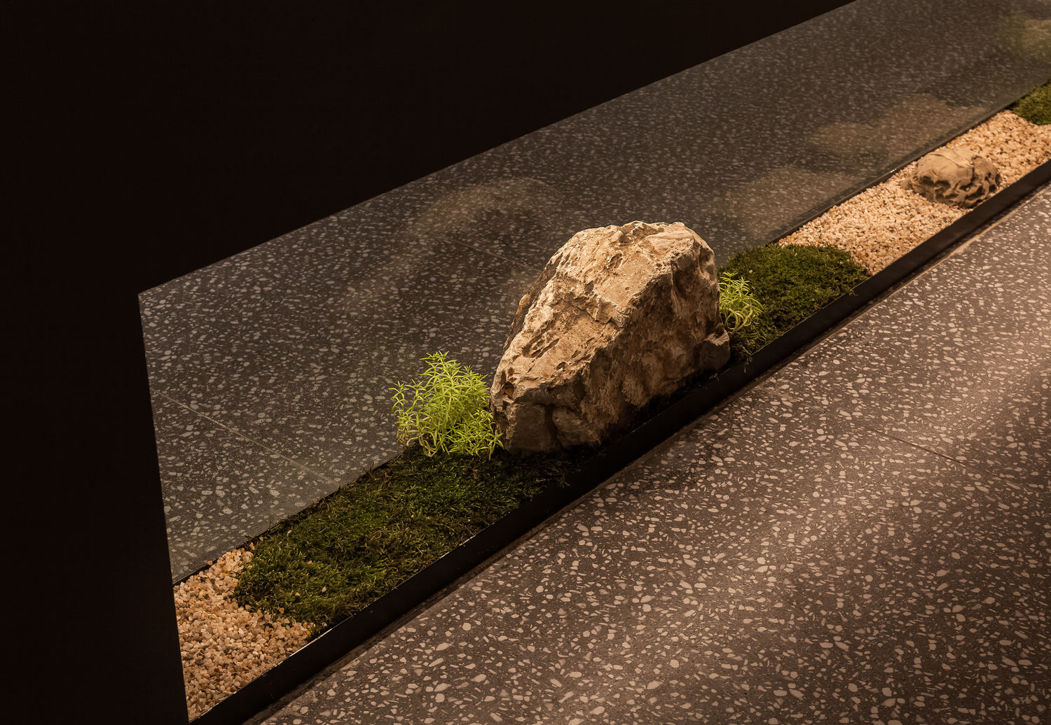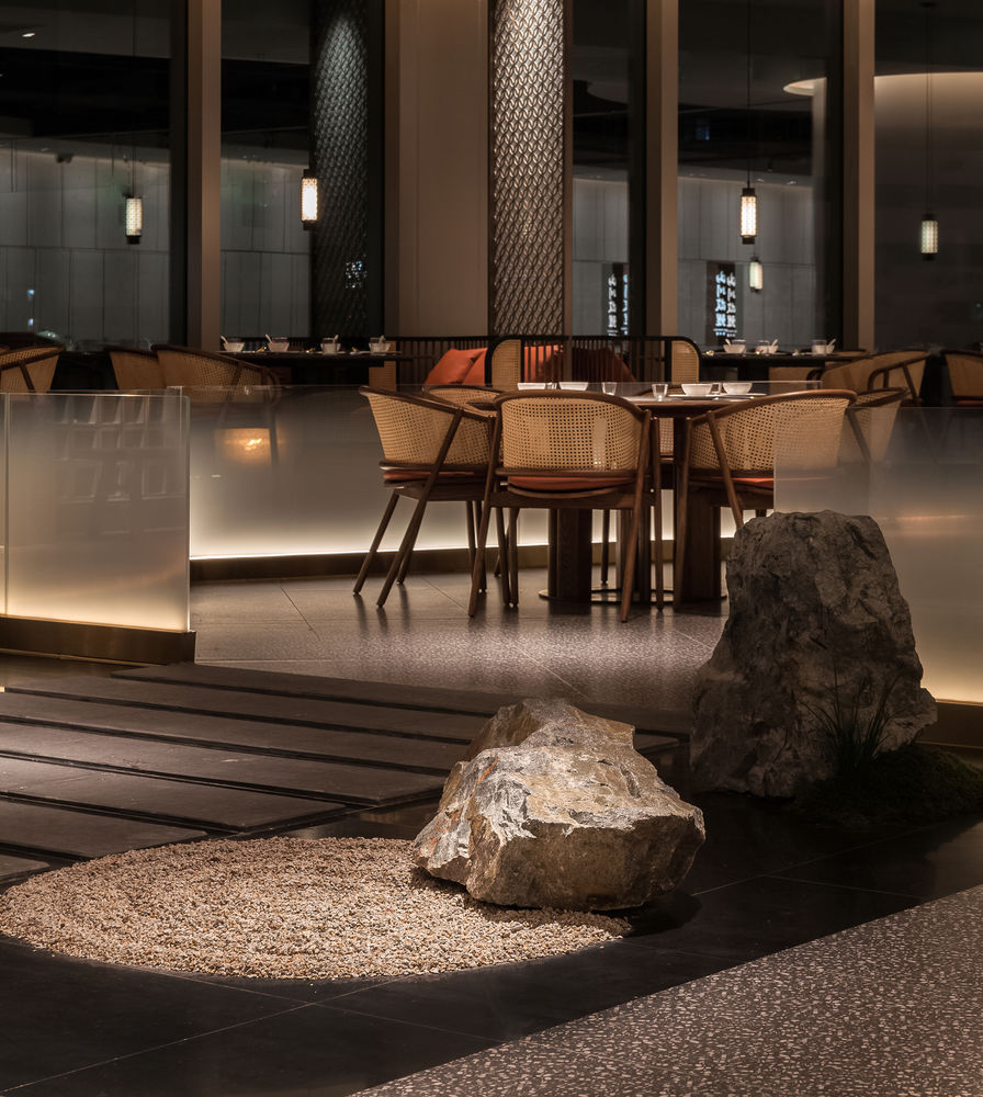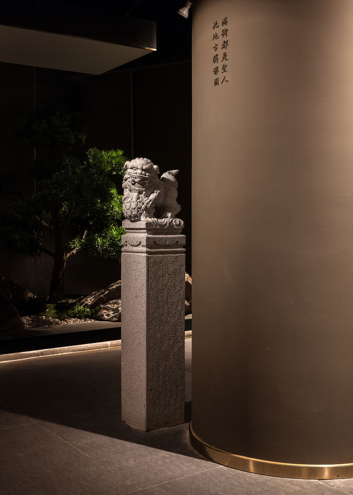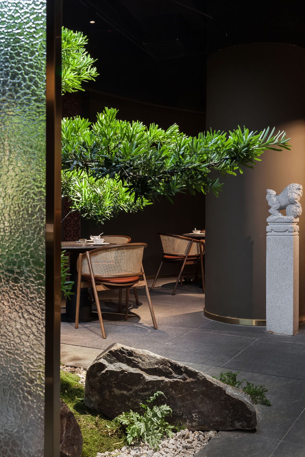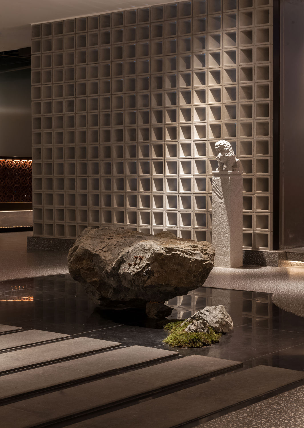 以石头为山,营造出宁静氛围。当一座山被建造时,有陡峭的墙壁高耸而立。闽南惠安石雕与景观石装饰相结合所展现出的魅力在于将虚与实相结合,创造出虚实相辅相成的效果。